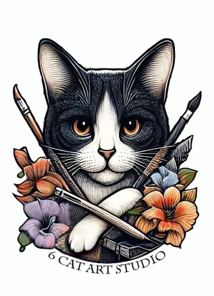 6 Cat Art Studio is a small art studio run by one human and six cats who believe they are in charge. We make whimsical, hand-crafted art inspired by nature, Texas wildlife, and whatever hasn’t been knocked off the table yet.